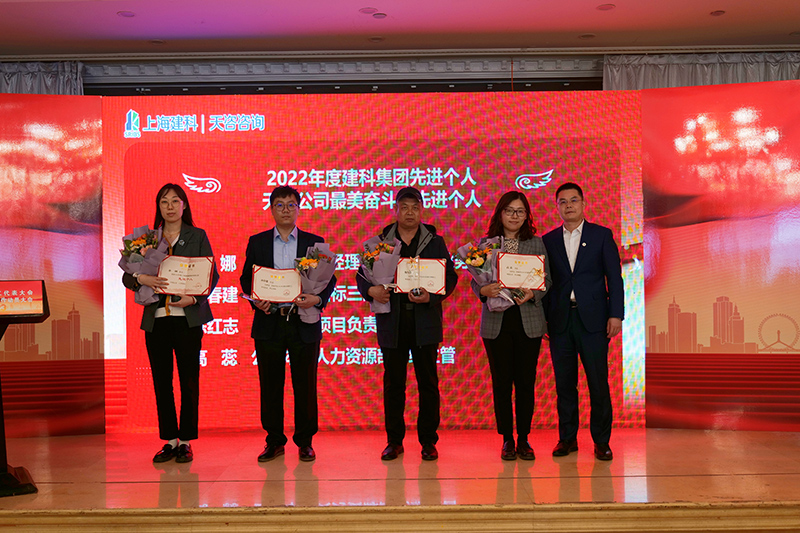 大會表彰2022年度建科集團先進個人、天咨公司最美奮斗者優勝單位、優秀集體、先進個人和優秀員工。