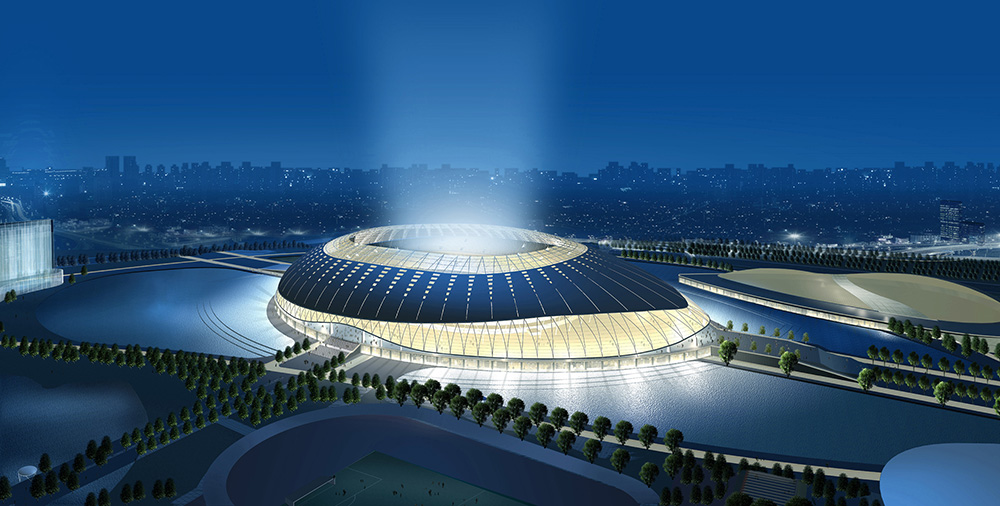 天津奧林匹克中心體育場(chǎng)位于天津西南部的奧林匹克中心內(nèi),占地34.5公頃,總投資14.8億元,整個(gè)中心體育場(chǎng)占地7.8萬(wàn)平米,建筑面積15.8萬(wàn)平米,該體育場(chǎng)南北長(zhǎng)380米,東西長(zhǎng)270米,高53米,設(shè)計(jì)分為六層。看臺(tái)3.48萬(wàn)平米,8+1跑道4560平方米,訓(xùn)練場(chǎng)2萬(wàn)平米,草皮場(chǎng)地7680平米,體育場(chǎng)擁有觀(guān)眾座席6萬(wàn)個(gè),主席臺(tái)座席500人,記者席300人,總體可容納8萬(wàn)人。