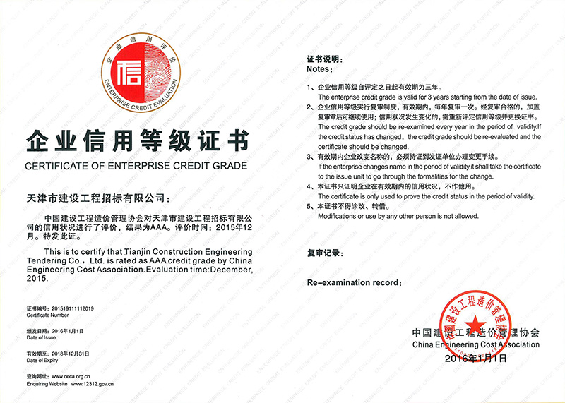 中價協信用等級證書-AAA
